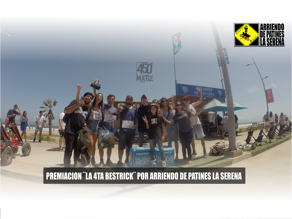 Las gestiones principales fueron siempre ver que quienes vinieran se fuesen con una buen recuerdo , es por eso que como organizadores nos propusimos premiar a todo aquel que demostrara que sentia el patin como nosotros enfocamos cada mensaje y publicacion , premiar a quienes se lo ganasen de verdad mas alla del nivel que hayan demostrado , todo esto logicamente aparte de las categorias en Bestrick que fueron Principiante+Junior , Amateur mixto y Pro . Tuvimos dos premiaciones , una terminando el evento en las bancas de Avenida Aguirre y otra al dia siguiente en la tienda Arriendo de patines La Serena , y los resultados fueron los siguientes :