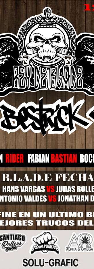 No queda duda que solo los mejores se posicionan en la cima , pero a diferencia de los campeonatos normales , este evento de BLADE busca estrategia por muy bueno que seas la estrategia al igual que en el ajedrez es primordial. Pero.. esta vez se necesitara mas que estrategia , ya que quien gane todos los encuentros se medira con la historia del rollerblading callejero de Chile , un patinador que a pesar de todos los años que lleva abrochandose los patines sigue subiendo el nivel , exacto , alguien podra enfrentarse a los true kingrind de Diego Truko??